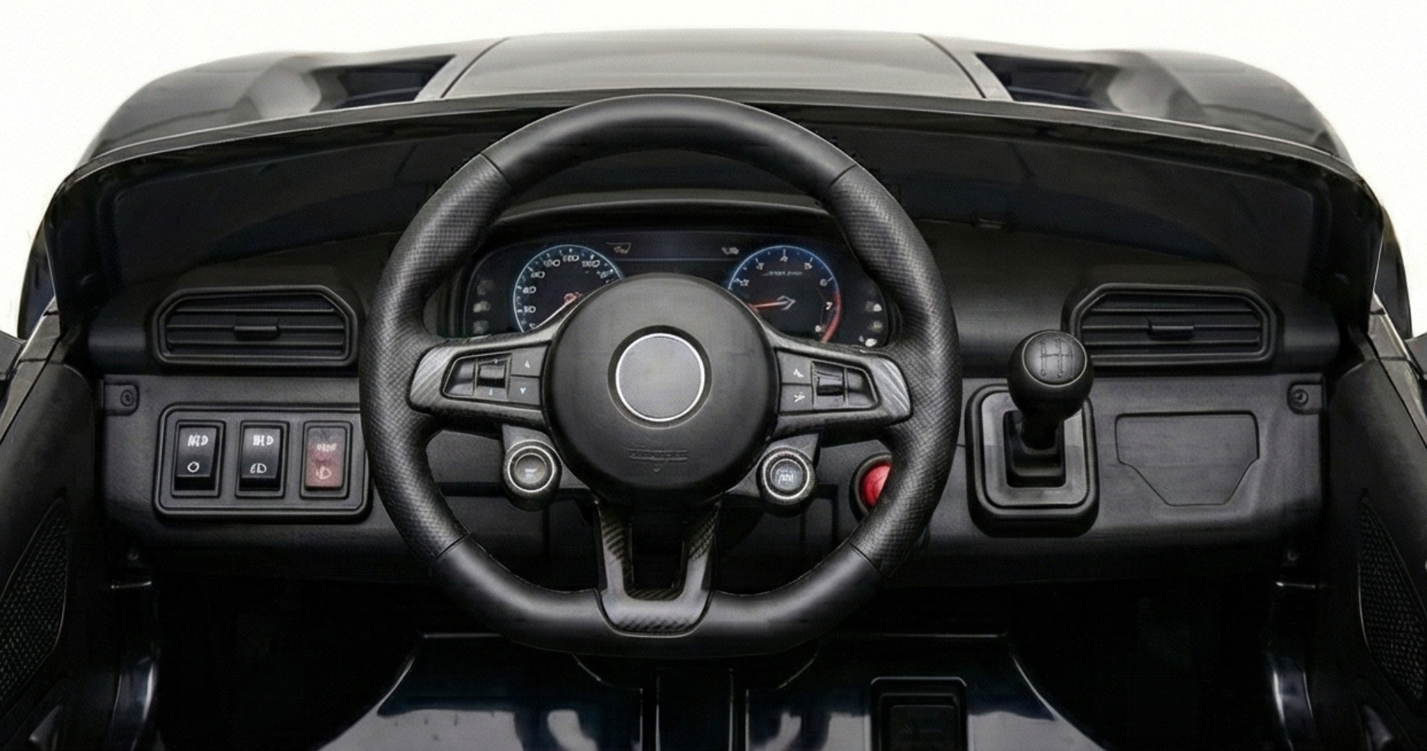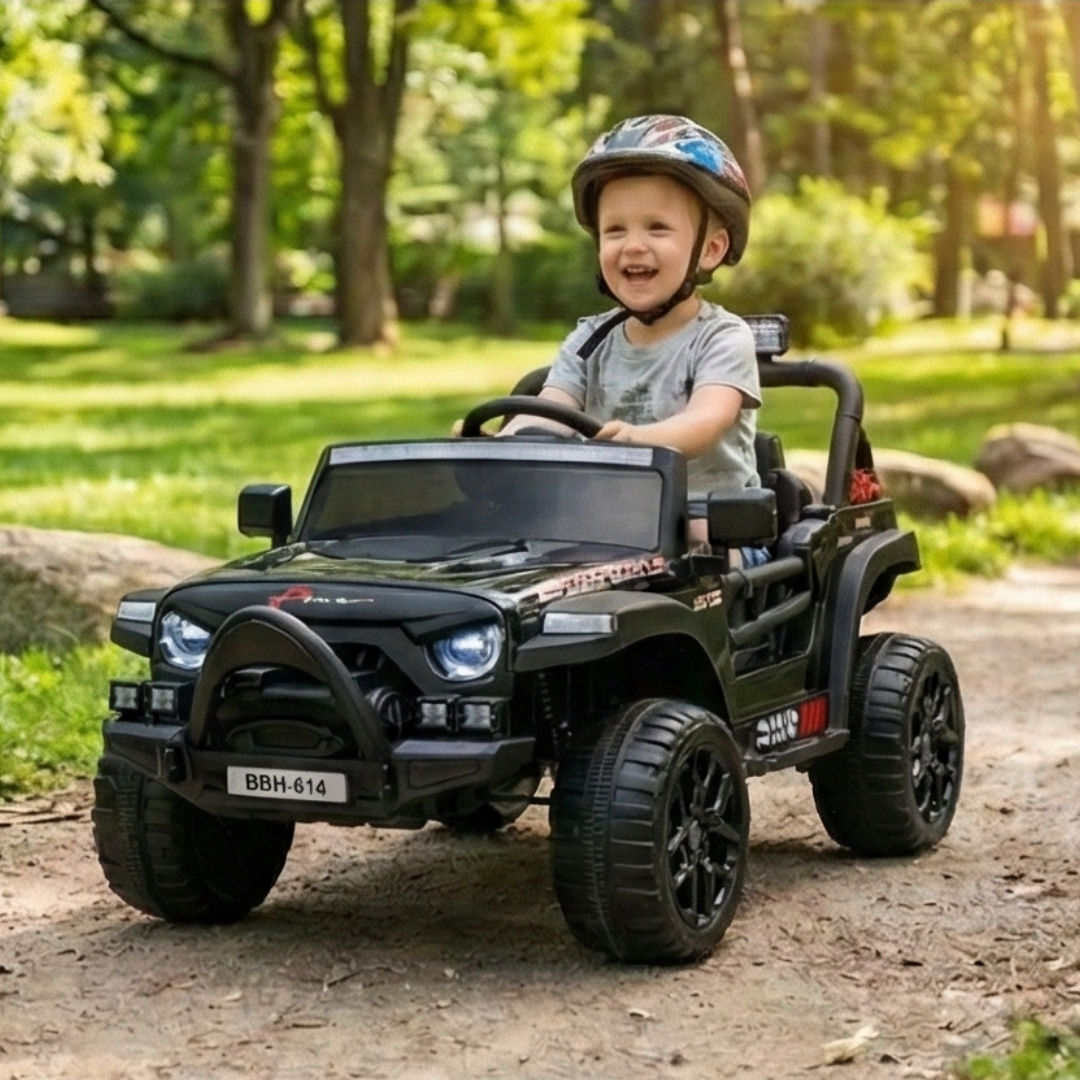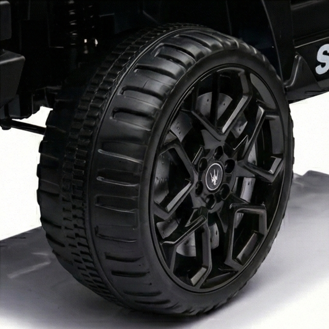 Cuenta con doble motor de 12 V, suspensión reforzada, música incorporada y control remoto con freno de emergencia, brindando seguridad total para niños y tranquilidad para los padres.