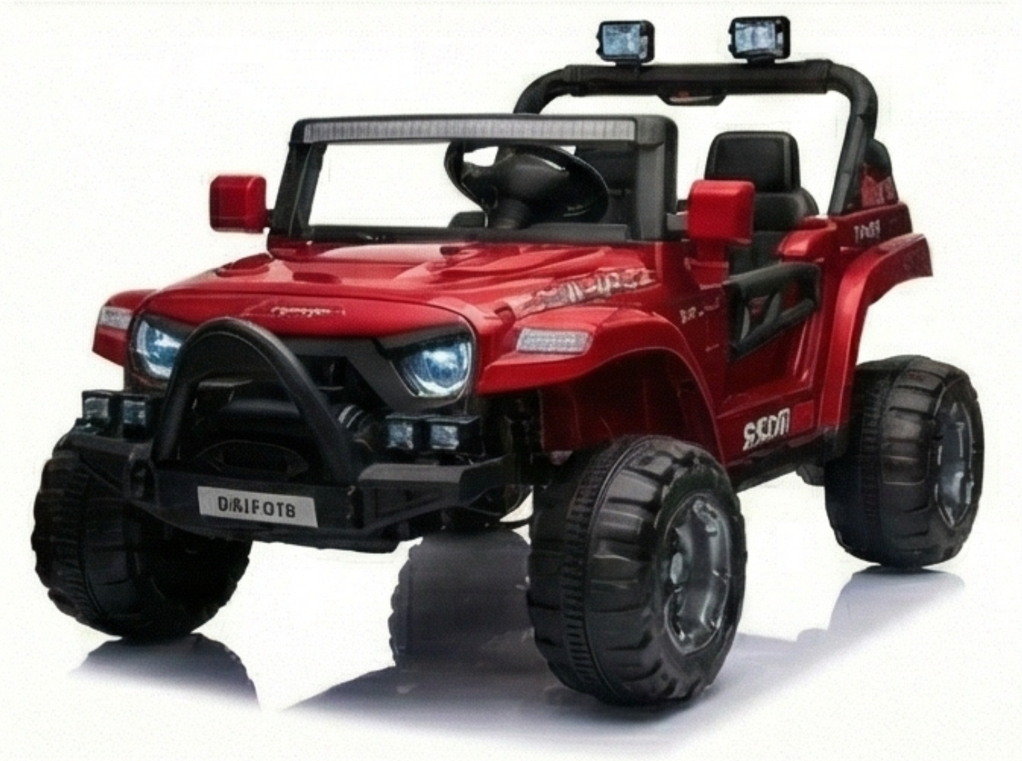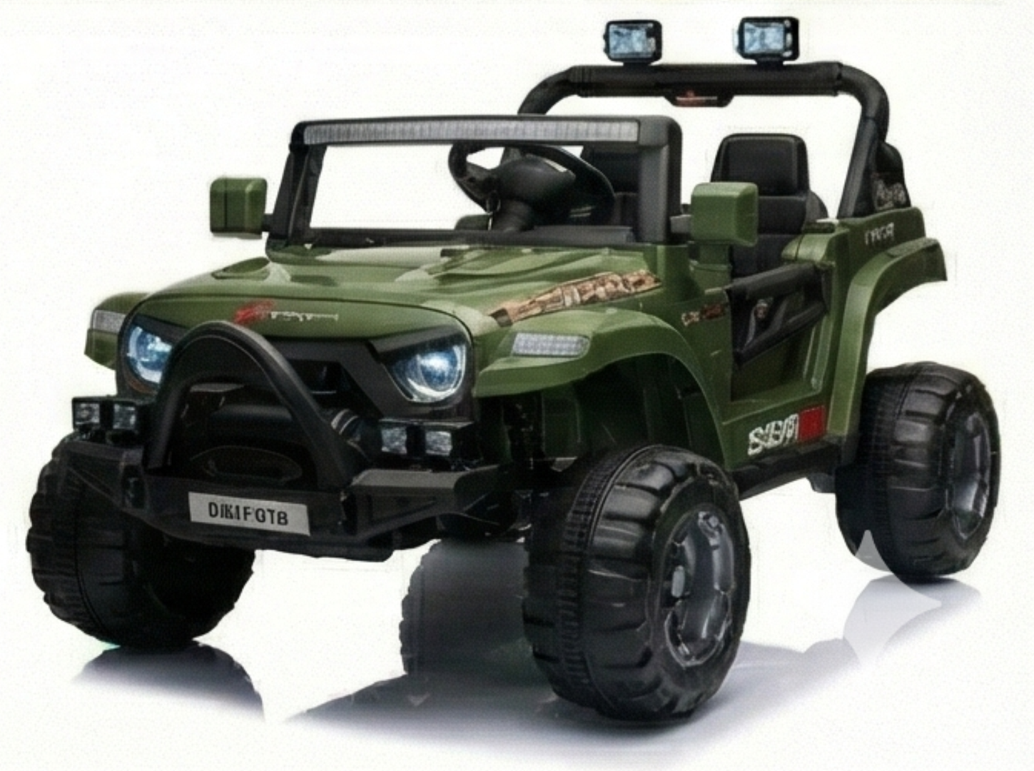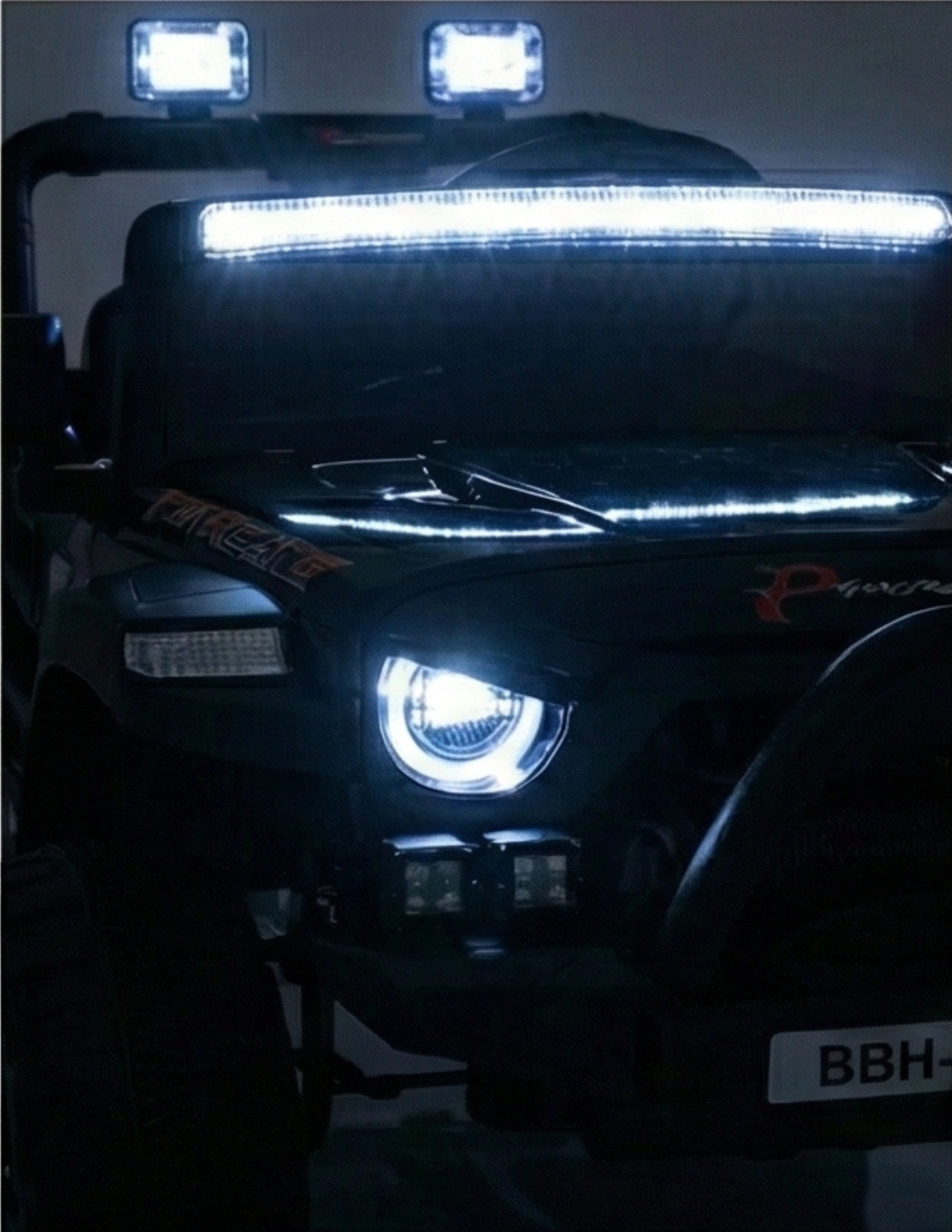 El Jeep Thor 12 V fue creado para los pequeños aventureros que adoran los caminos difíciles. Su diseño robusto incluye luces LED, parrilla frontal reforzada y neumáticos grandes tipo tracción que garantizan estabilidad y agarre.