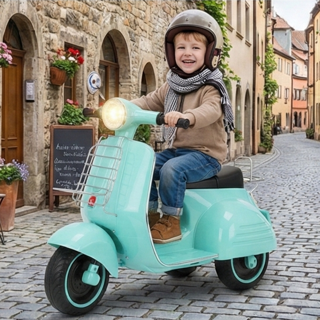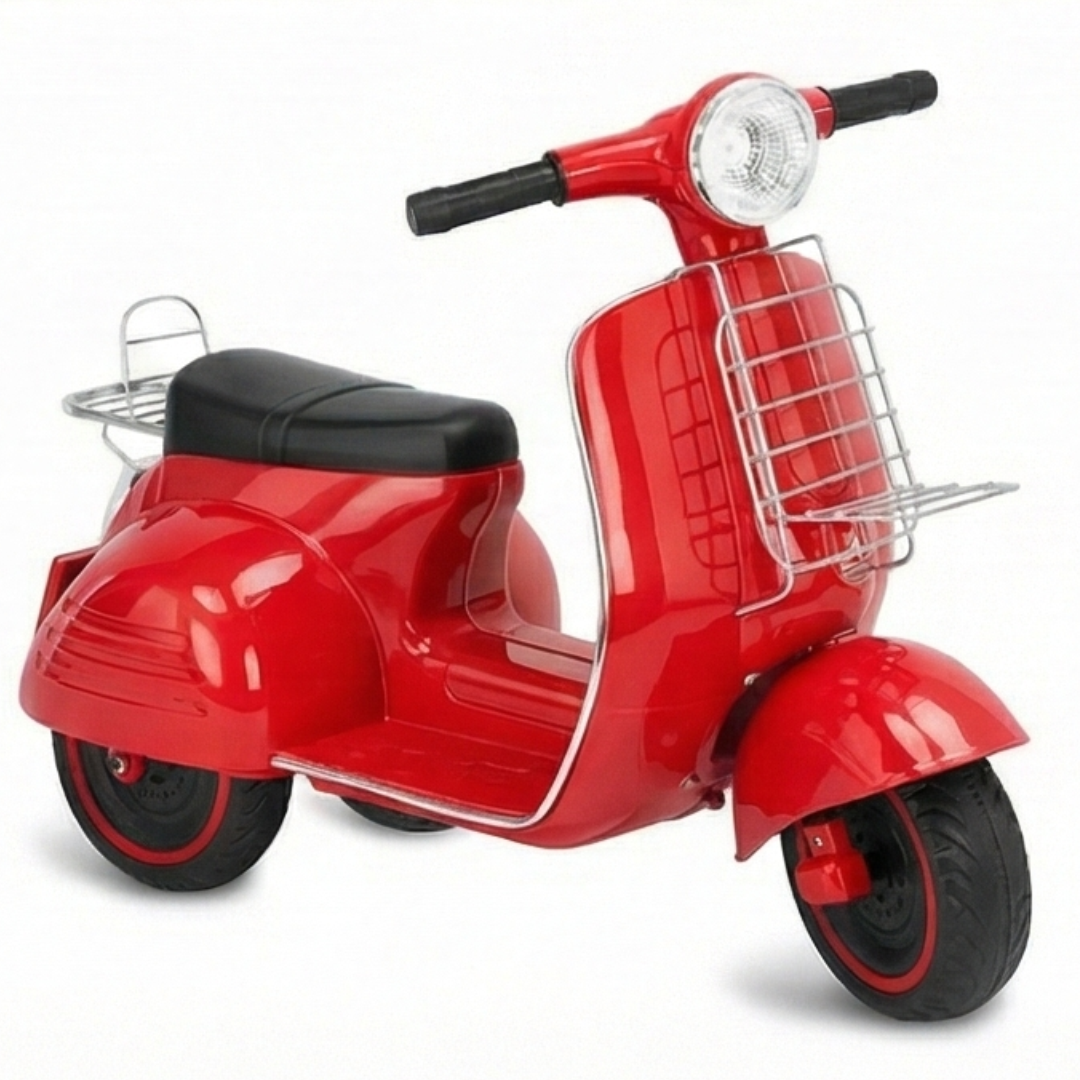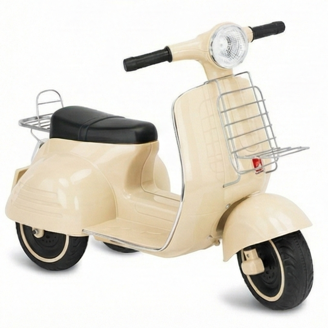 La Lambretta Retro 6 V Vrumix es pura elegancia vintage. Con un diseño inspirado en las clásicas scooters italianas, combina seguridad, confort y estilo. Es ligera, estable y perfecta para niños de 2 a 5 años que comienzan a dar sus primeros paseos.