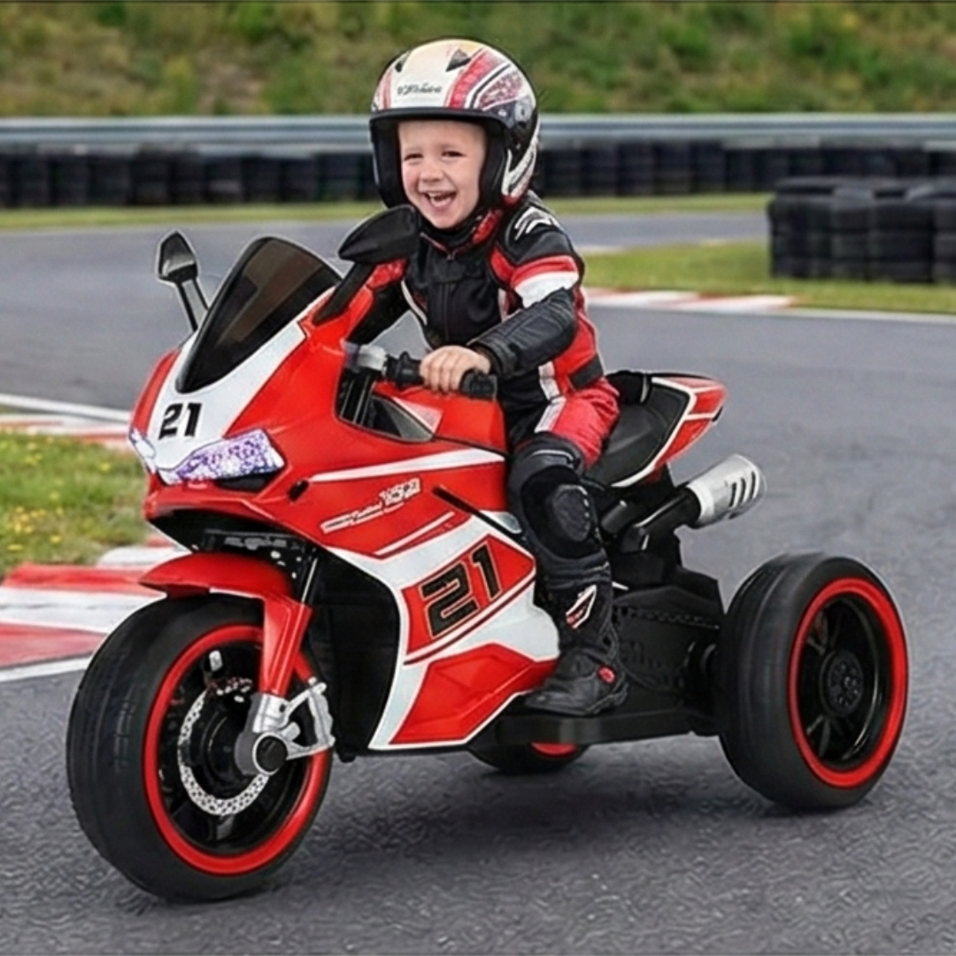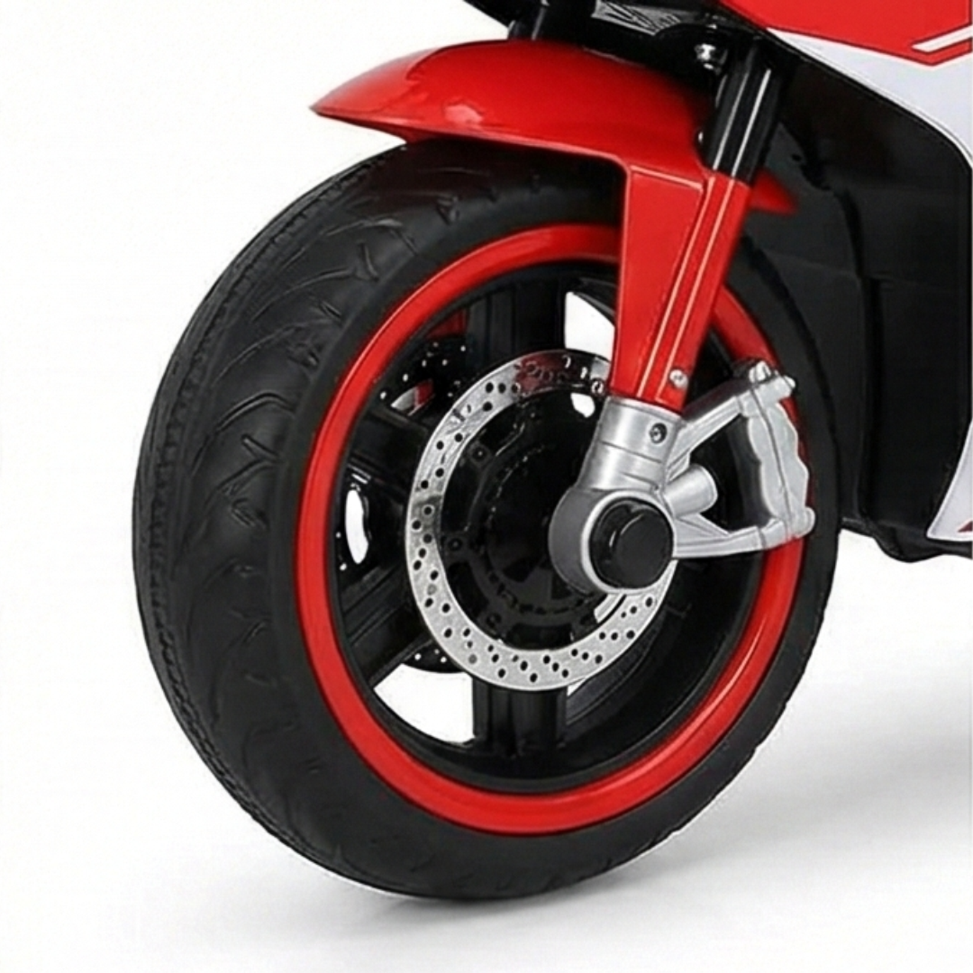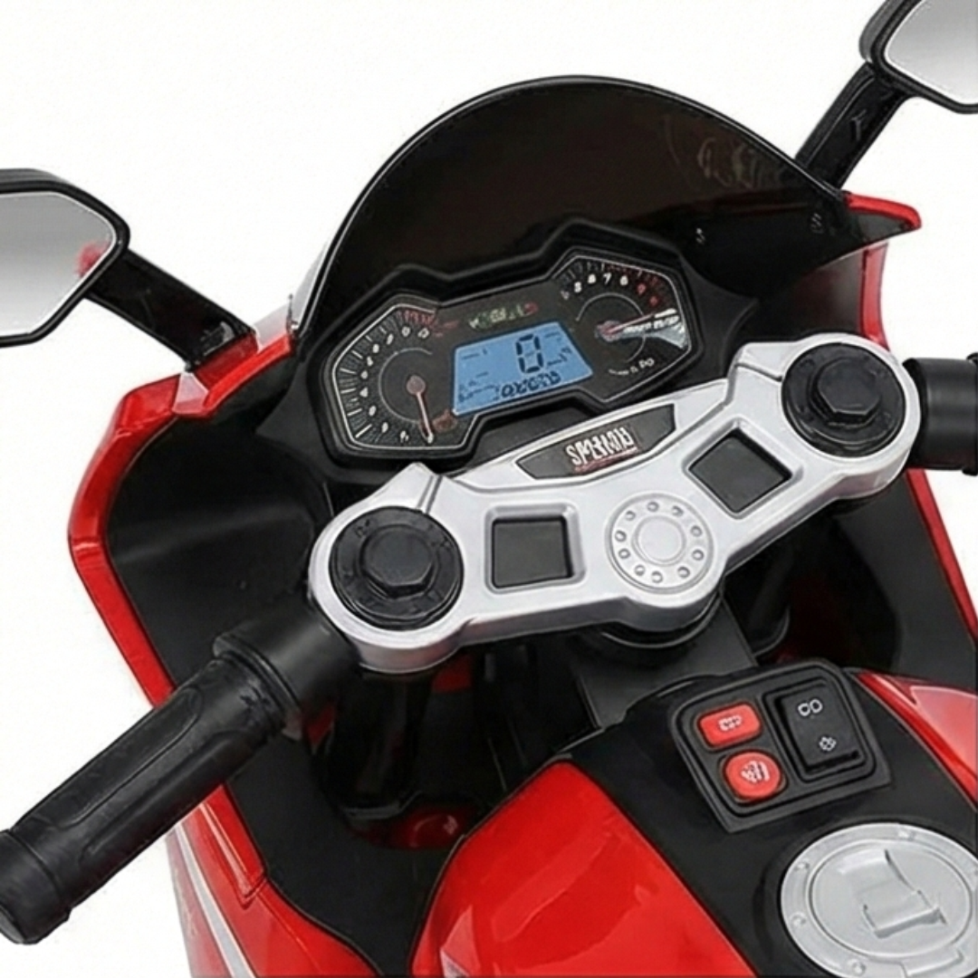 La Speed GT 12 V es una moto deportiva pensada para niños apasionados por la velocidad. Con diseño aerodinámico y luces LED delanteras, ofrece una conducción segura gracias a su acelerador de pedal y ruedas estabilizadoras desmontables.