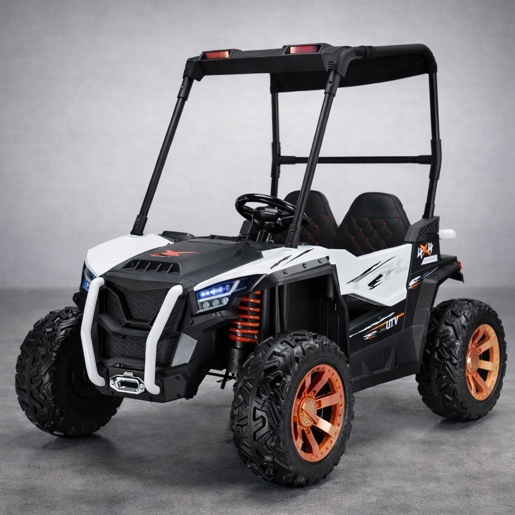 El UTV eléctrico todoterreno para niños fue desarrollado para niños a quienes les gusta la aventura, la emoción y una apariencia deportiva llamativa. Con un diseño inspirado en los vehículos utilitarios todoterreno, ofrece una experiencia de conducción divertida, estable y segura, ideal para uso recreativo en entornos controlados. Diseñado para brindar seguridad y control, este modelo es ideal para momentos de ocio en áreas privadas, patios, fincas, condominios y espacios recreativos.